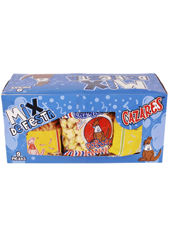 Contenido: Harina de Trigo en Forma de Mini Cuadro, Tirita, Donita, Sabor Sal con Limón y Chile, Palomita de Maíz Sabor Sal y Limón, Chile, Queso y Mantequilla.